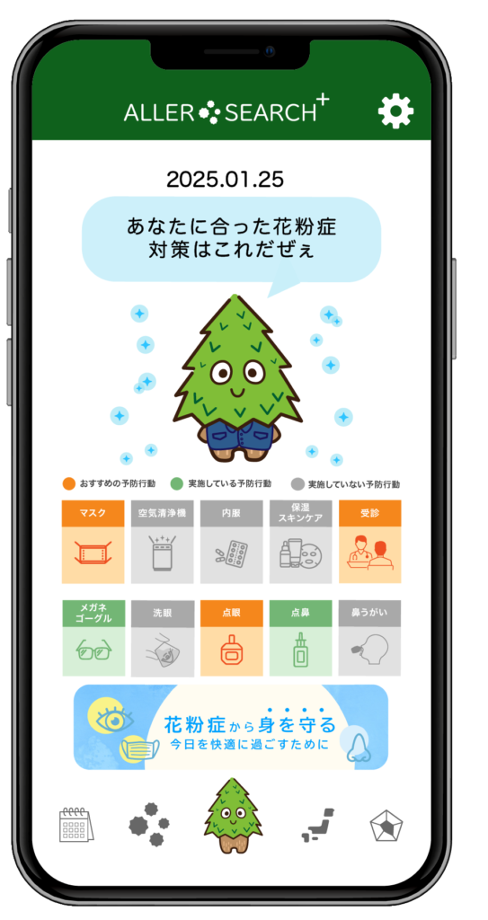 また、花粉症の症状の記録を行うことで、翌年の花粉症予防につなげることができます。